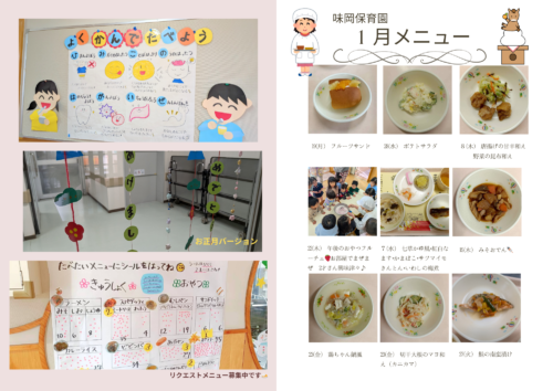 今月は季節の行事食として七草粥を提供し、日本の食文化や「食べることの大切さ」を感じられる機会をつくりました。そのほかにも、みそおでんや鶏塩ちゃんこなど体が温まる献立や、子どもたちに人気のフルーツサンドを取り入れています。