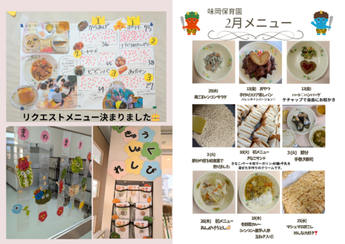 2月の給食では、季節の行事や新しいメニューを取り入れました。